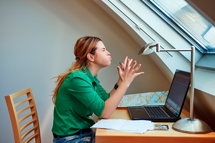 I leapt at this chance. This one last chance. I went to Currys and a totally uninterested sales assistant stood marooned next to me, gawping, as I rang my tech guy and read out all the titles and specifications of the laptops I didn’t mind the look of — all the blue ones, basically.