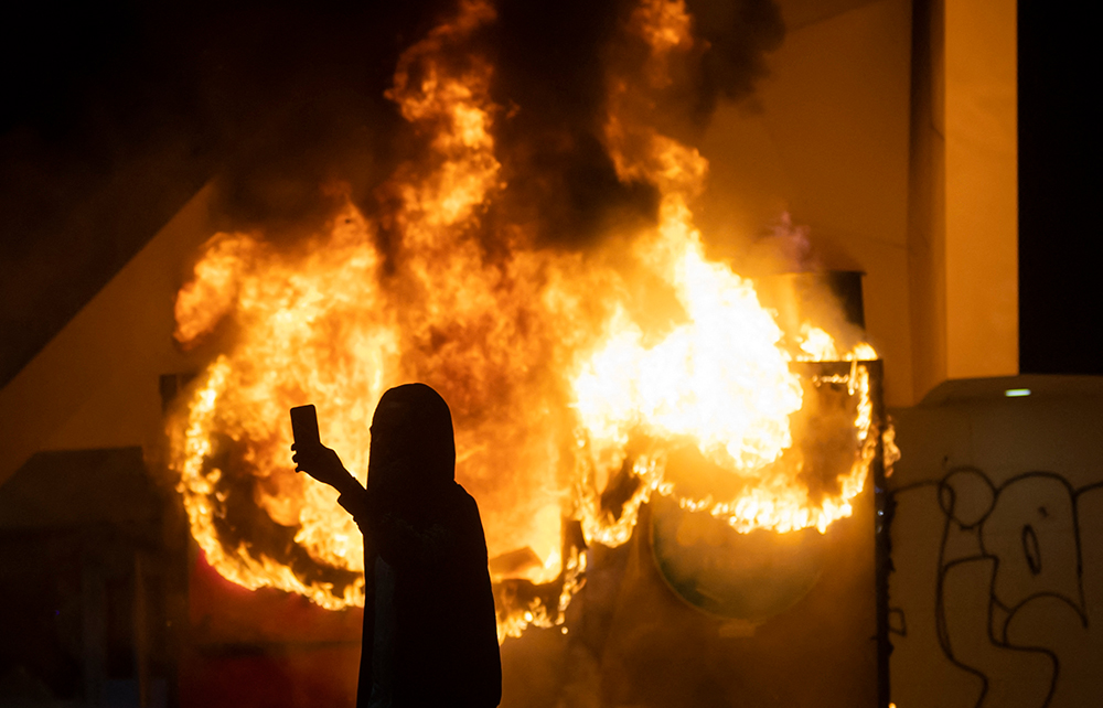 What needn’t we go scrounging into the bowels of the internet to find? What in this still-young decade was illustrated at scale? What pops into most people’s heads as an example of contemporary American ‘civil unrest’ (the most understated expression in the political lexicon)? Left-wing violence. Following George Floyd’s death, more than 140 cities across the country erupted, sometimes for months on end. Businesses, often black-owned, were looted; crowds of hooligans ravaged down Fifth Avenue in Manhattan, smashing windows and grabbing electronics and high-end trainers. Arson and vandalism were rampant.