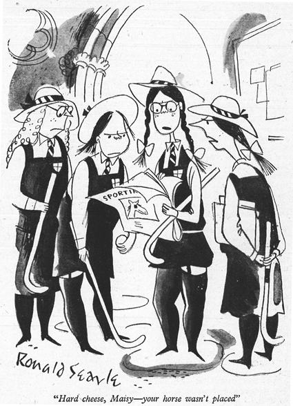 cartoonist who could also draw — a rare thing. After the war, he became famous for a series of drawings he did for ‘Lilliput’ called St Trinian’s. The girls Searle created did the most