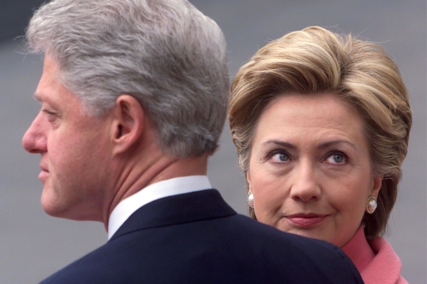 And for what is she owed? Standing by her man, of course. The young women of America are too young to remember the deeply unedifying exhibition the Clintons made of themselves in the 1990s. Back then, Bill referred to his wife as ‘the First Liability’ because everything she touched — in the words of Martin Amis — turned ‘out to have the word gate tacked on to the end of it’. Worse still was how Hillary stuck by her husband as he stuck his penis into any woman willing — plus, according to Juanita Broaddrick, at least one who wasn’t. And she didn’t just stick by him; she helped him stick it to each and every member of her own sex who had the temerity to complain. And she continued to dance to Tammy Wynette’s tune even after he left office, as he gadded about the globe with billionaire Ron Burkle on a plane dubbed Air Fuck One. Now, Bill is too ill to carry on philandering, but he was at it as recently as 2008 when ‘a bimbo eruption’ — as a Clinton troubleshooter delicately put it — threatened to derail Hillary’s nascent campaign. Fortunately, Obama won.