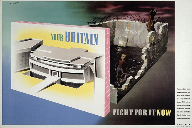 Churchill said that we shape our buildings and then our buildings shape us. And at the Wellcome Collection there is a fine 1942 poster by Abram Games, last master of the drawn lithograph, that shows a disgraceful slum giving way to a shiny, optimistic new modernist building. Churchill objected to it. But then Churchill objected to the Festival of Britain because he thought it Soviet.