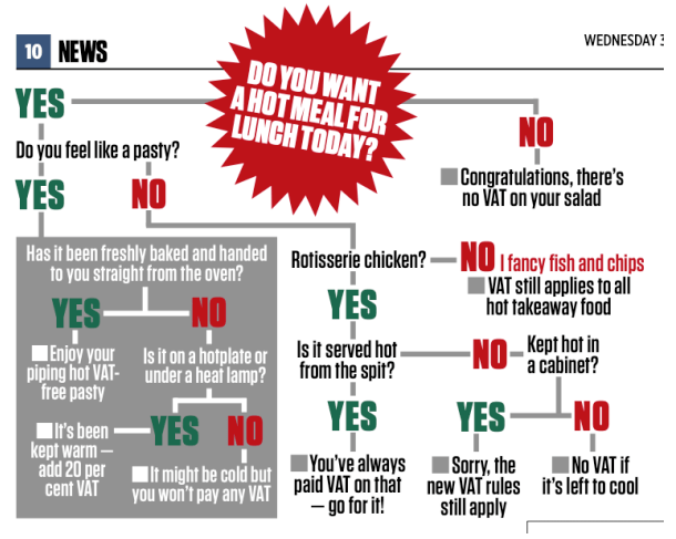 Further to Pete’s blog on the new rules about pasties and VAT, the below graphic from today’s City AM sums it up perfectly. It does, of course, make the case for tax simplification — which is what George Osborne was trying to do in the first place.