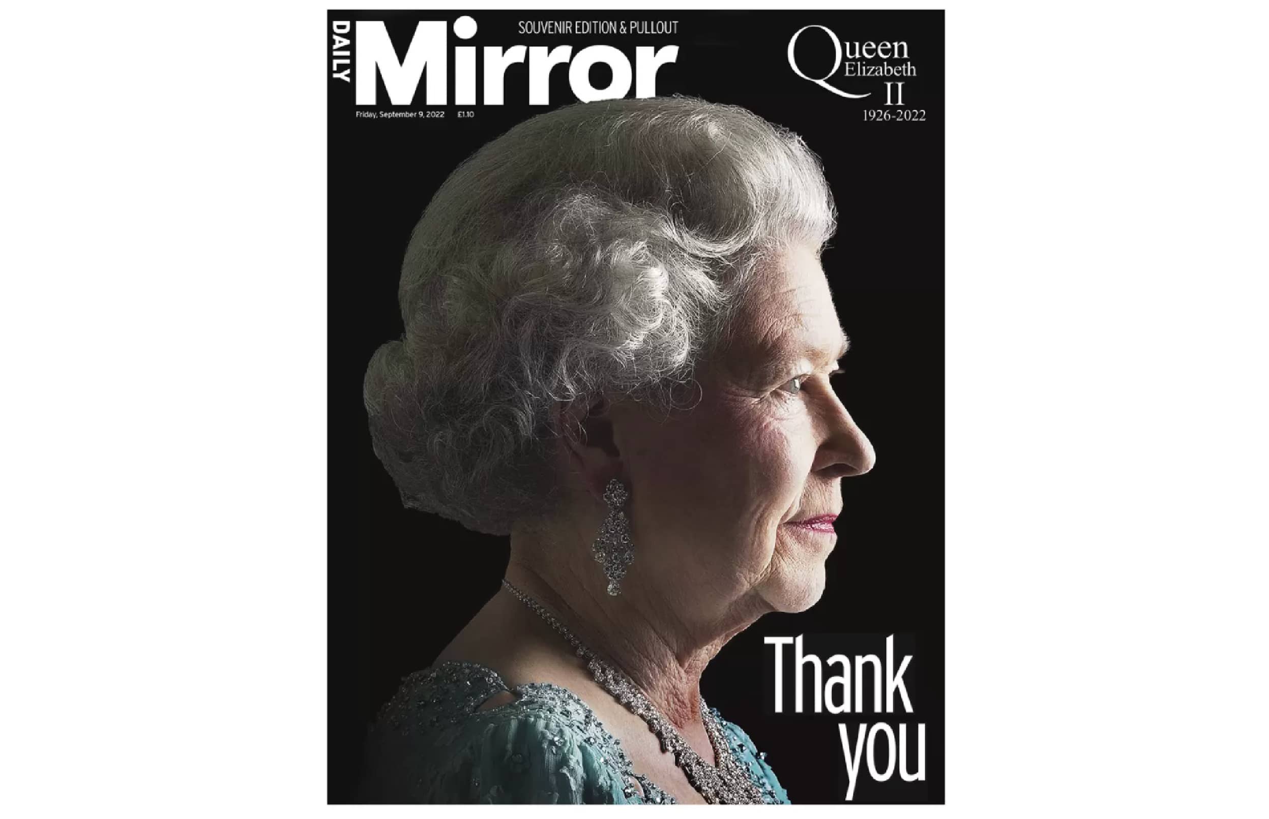 ‘Thank you’ was the simple message adorning the front page of the Daily Mirror, alongside a more recent picture of the Queen than many other papers have used.