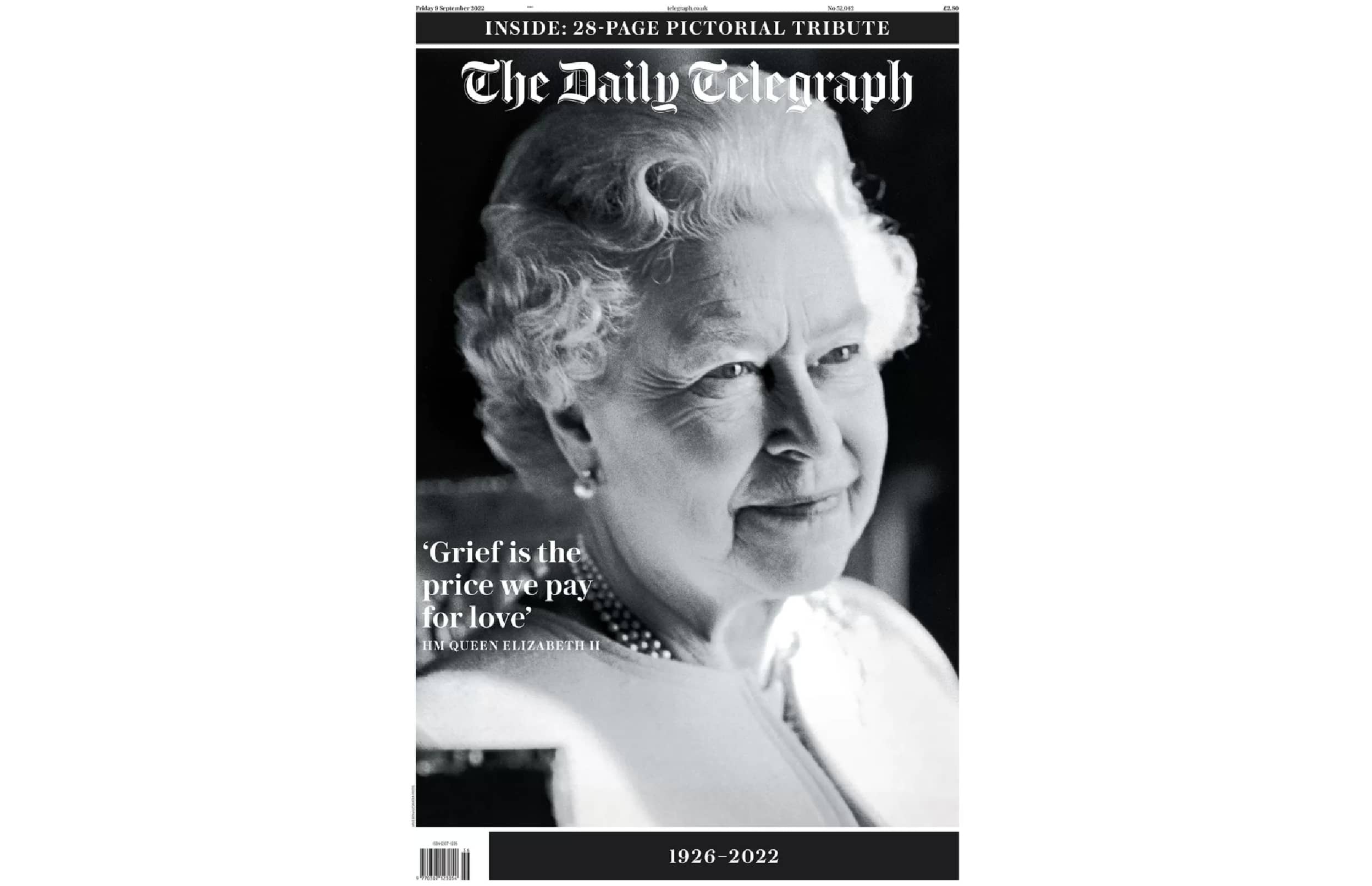 The Times focuses on the Queen’s extraordinary life of service. It also features a moving quote on the back page from her Christmas broadcast in 1957: ‘I cannot lead you into battle. I do not give you laws or administer justice but I can do something else: I can give you my heart and my devotion to these old islands, and to all the peoples of our brotherhood of nations.’