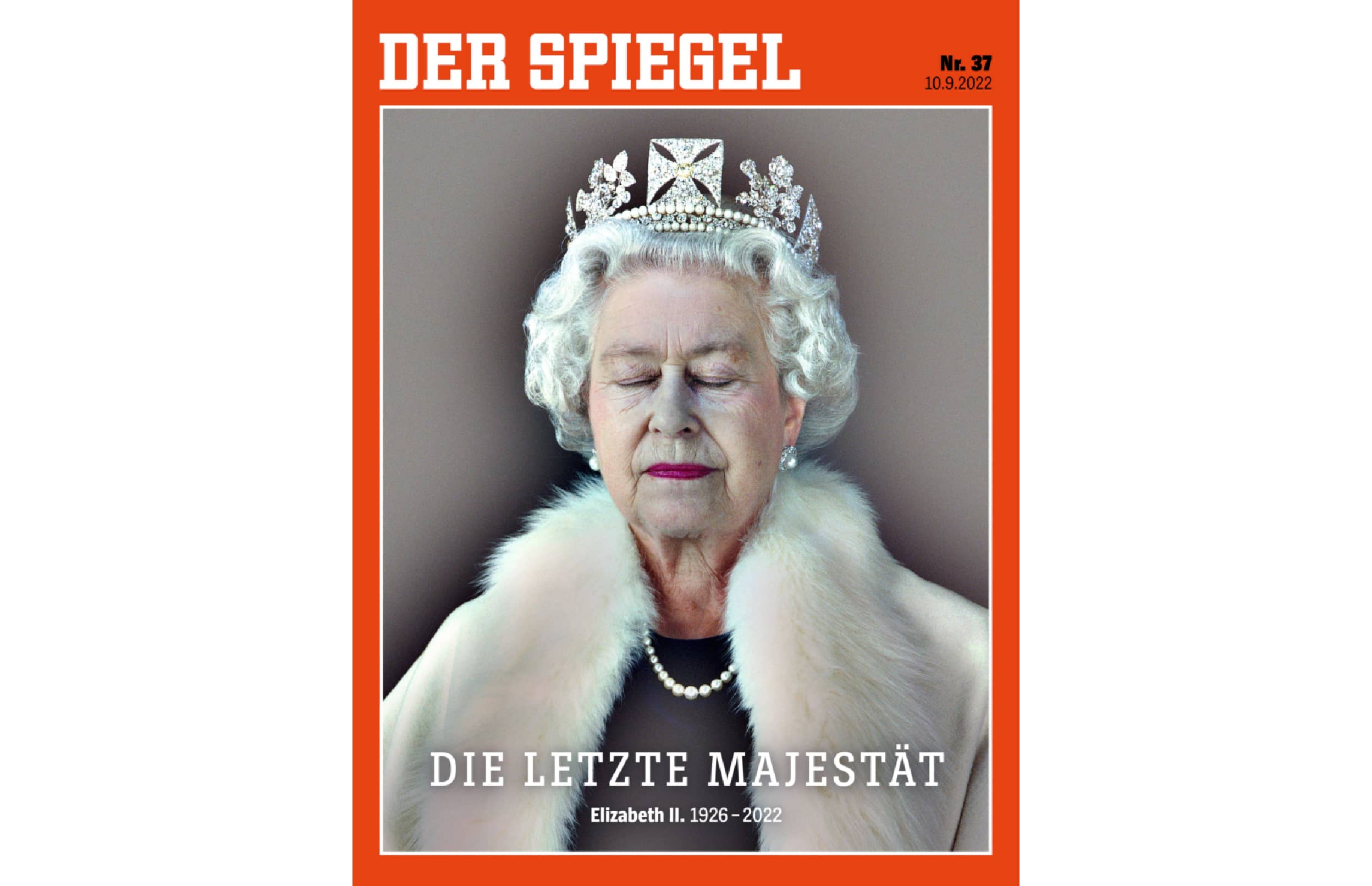 Germany’s Der Spiegel uses a peaceful picture of the Queen with her eyes closed above the headline: ‘The last majesty’.