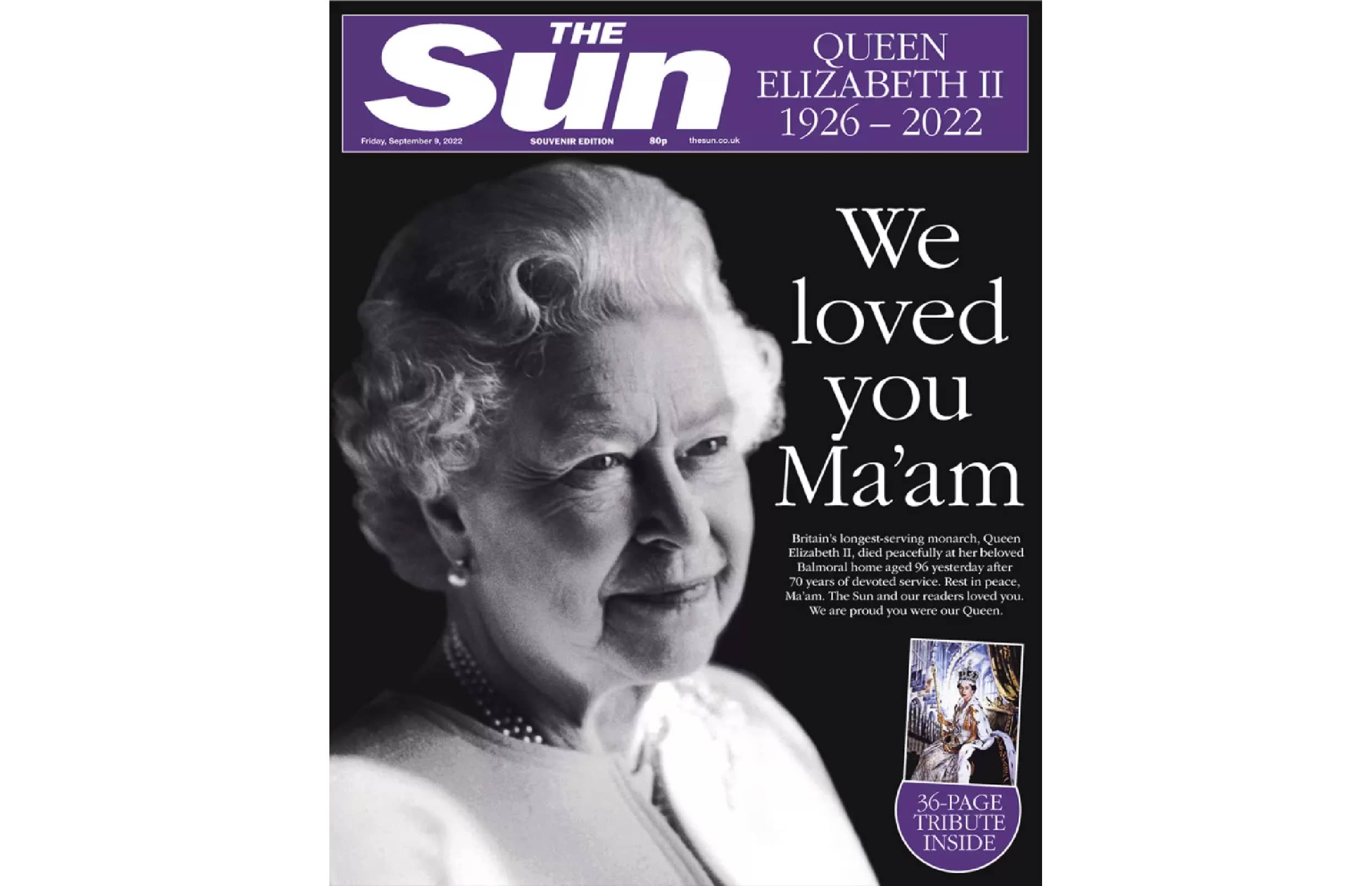 The Sun emphasised the love its readers had for their monarch of 70 years and commemorated her passing with a 36-page special issue.