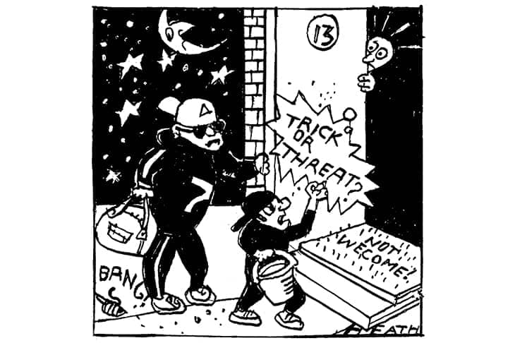 Come again? A turnip? Yep, a turnip. Or properly, a swede turnip. These excellent root vegetables, popular in Ireland boiled, mashed and served with pepper, were sometimes hollowed out, carved with holes for a face and used as lanterns for lights or candles. The effect was charming. They’re much harder than pumpkins to carve, being solid all the way through, but the residue can be served up for dinner and is nice eaten raw, sweet in flavour. The turnip is obviously not one of those pre-Christian relics of the festivities themselves, having been introduced in the 19th century, but it’s still more solidly traditional than the American import.