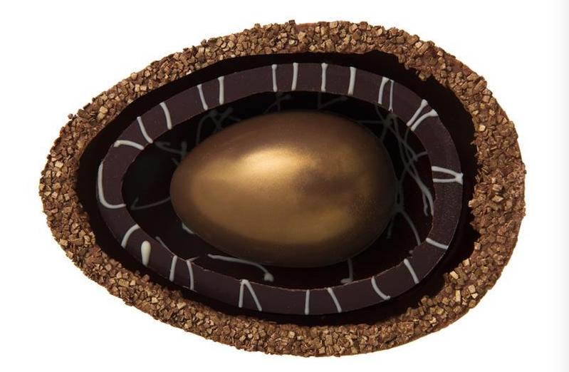 All that glitters might not be gold: sometimes it’s better, it’s chocolate. At the centre of Morrison’s Russian-doll style Easter egg, as if laid by a mythical goose, sits a shimmering, golden egg. It is surrounded by a dark and white chocolate marbled half-egg and, on the outside, a milk chocolate egg covered with chocolate vermicelli.