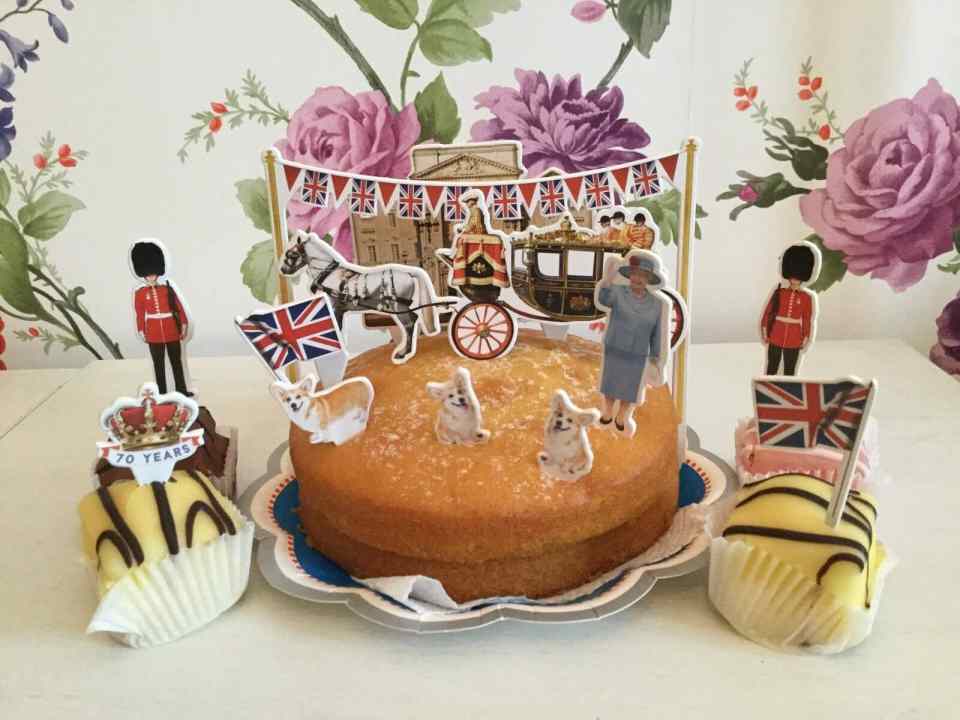 However, embracing kitsch is probably the most failsafe way to handle this once-in-a-lifetime decorative dilemma. You can even buy edible rice paper cup-cake decorations, featuring portraits of Her Maj throughout her seven decades’ reign, 24 for £3.75, Snazzy Creations Gifts. But the £5 cake topper – perfect for that Victoria sandwich – from party supplies company Talking Tables has to take the er, crown. It’s a jolly ensemble of colourful cut-out figures of the Queen, her guards, assorted corgis, and even a golden coach, and, thankfully, no looming apparitions of Prince Harry or Andrew to spoil the fun.