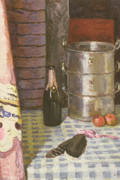 Both he and Clive Bell were good shots, and there was always plentiful game at Charleston and Hilton in season. Occasionally this led to episodes which the Marx Brothers could have exploited had they made an Oscar-winning film, The Body Snatchers.Vanessa and Duncan would appropriate the birds and hang them on a nail, keen to paint natures mortes. Clive, while sympathetic to the painters, was anxious lest the game got too high in the heat of the studio. On one occasion, Grace, the cook, knocked on the studio door, distraught: ‘Mrs Bell! Mr Grant! I need these birds here and now. Mr Bell wants them for dinner before the maggots get them and I must get them plucked and all.’ She cooked them very well, with fried breadcrumbs, watercress from the dewpond in the adjacent field and crisp potatoes. Clive uncorked the claret. There is a remarkable painting by Vanessa, reproduced in this book, of a brace of pheasants, definitely dead, but appearing to try to have a post-mortem beakful of wine while hanging by their tail feathers.