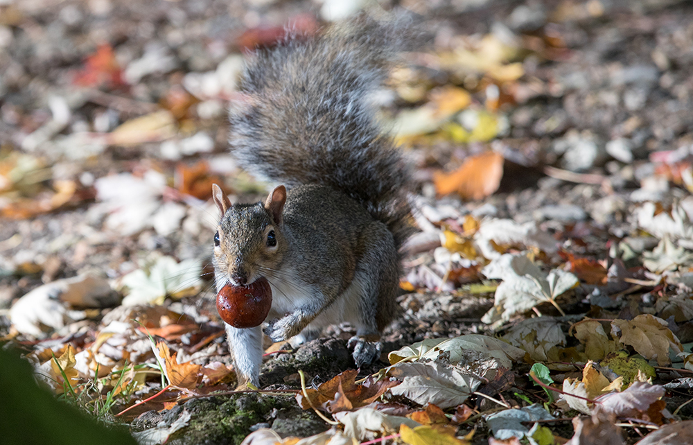 I’ve grown to hate this tree over the years. It isn’t just the astonishingly loud noise the conkers make. It’s also the damage the tree does to the lawn. A typical conker will bounce off the shed and land on the grass, where it sits until a squirrel darts out of nowhere, picks up the mahogany orb with its two front paws, then uses its teeth to peel away some of the brown outer layer before digging a hole in the lawn and burying it. Why the squirrels do this is a bit of a mystery, given that the flesh is supposed to be poisonous and they rarely return to dig them up. It’s as though they’ve been enslaved by the tree and are labouring, zombie-like, to plant its seeds all over my lawn.