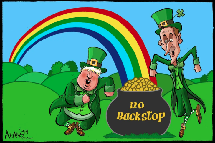 My colleague at the Evening Standard, the excellent cartoonist, Christian Adams, has been having a bruising time of it since his cartoon in yesterday’s paper was published. It features two leprechauns, Jeremy Hunt and Boris Johnson, capering around a pot of gold at the end of a rainbow – the pot bearing the legend: “no backstop”.