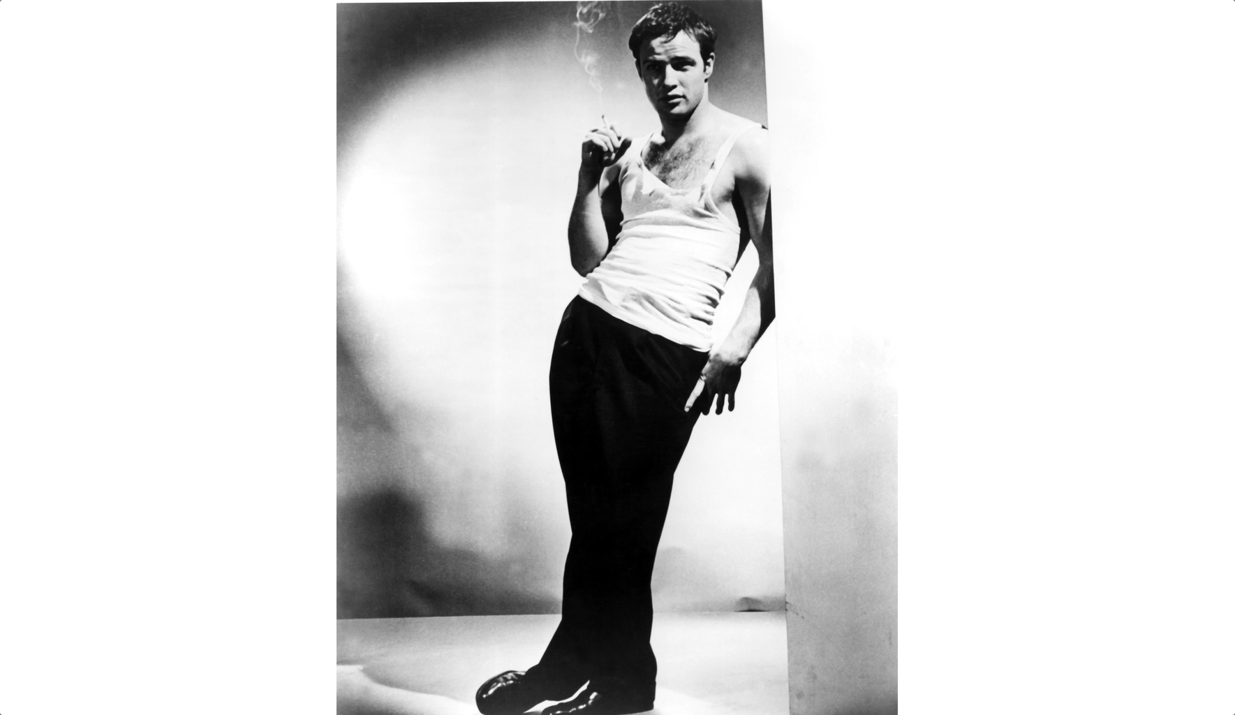 The classic rendition of course is Marlon Brando, playing Stanley Kowalski in A Streetcar Named Desire. Certainly his shoulders didn’t lack definition – while raging in his white vest, he smouldered as much as the New Orleans nights. Another example I fell for in my teens was on a now largely forgotten but then zeitgeisty book cover. The 1982 Picador edition of Edmund White’s A Boy’s Own Story showed a Matt Dillon lookalike in what my fashion-informed wife tells me is a ‘washed plum’ coloured vest. The fact that this was a gay memoir and that its imagery was gently homoerotic went over the head of my spellbound but straight teen self. I wanted the look. And I’ve worn vests ever since – usually in white, occasionally black, but never attempting anything as ambitious as washed plum. (A second caveat here: string vests are always wrong, no exceptions.)
