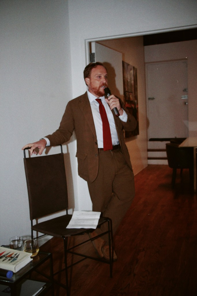 It was standing room only for Speccie subscribers for the conversation between New York editor Orson Fry and Cockerell. Afterwards, the author mingled with guests and answered their questions. The evening nicely lubricated with white wine, beer and sake, graciously provided by the event sponsor SOTO SAKE.