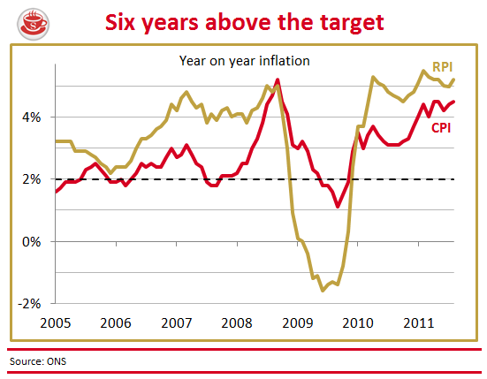 Today’s inflation figures remind us of the trouble the Bank of England will have if – as most analysts suspect – it embarks on another phase of Quantitative Easing. CPI inflation was 4.5 per cent in the year to August, and RPI at 5.2 per cent, both up a touch from July.