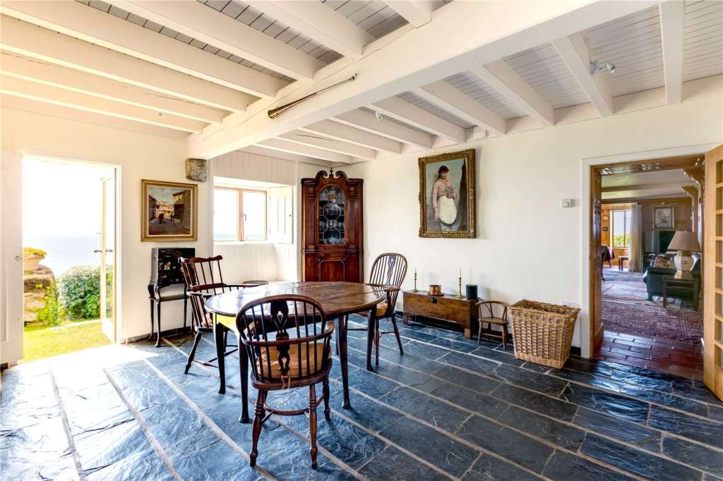 Le Carré, it seems, was also a dab hand at property renovation. He and his second wife, editor Valerie Jane Eustace, restored the cottages together, uniting the three into a single, 5,000-plus sq ft home for themselves and the four sons they had between them. They created four bedrooms (three ensuite), which includes a self-contained guest wing, plus a library with bespoke bookcases and a feature window at one end, glazed with what is believed to be part of the canopy from a second world war fighter plane. They also added a conservatory from where you can sit and watch the sweeping sea views.