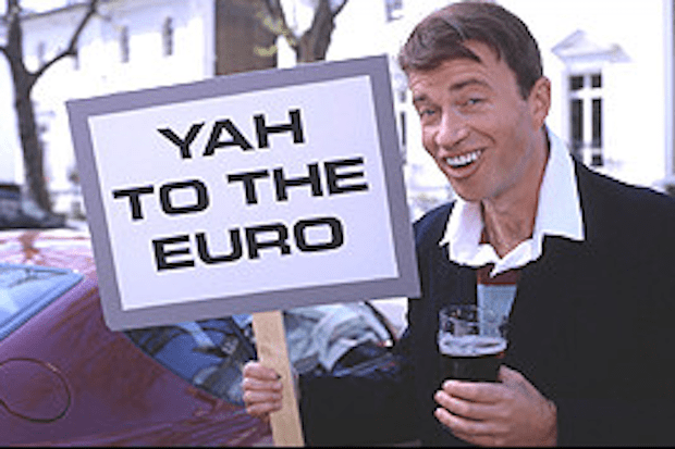 So, is it a case of Tim-Nice-But-Dim for Remain? Harry Enfield’s Old Ardinian comic creation — a parody of pleasant yet intellectually challenged public schoolboys — said ‘yah to the euro’ back in 2002 (before admitting he had no reason to support the currency other than that ‘it sounds like urine’). Alas, his endorsement wasn’t meant to count for much given that the video it appeared in was created to persuade people to rally against the single currency.