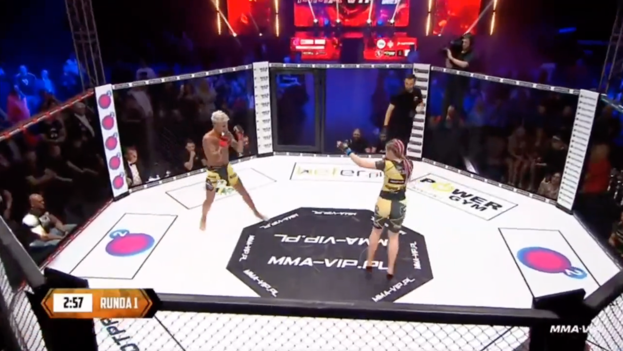 A second fight, between Michal Przybylowicz and Wiktoria Domzlaska was stopped in the first round when the female fighter had no answer to a vicious early Przybylowicz onslaught.