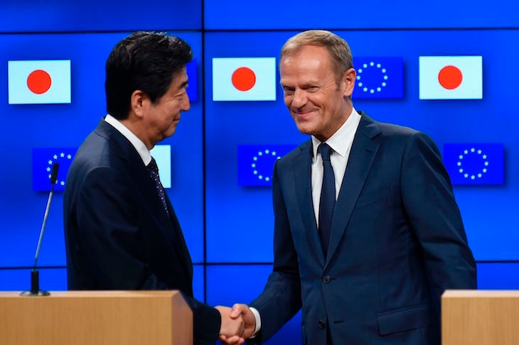 Donald Tusk, president of the European Council, is already trying to use this to taunt Trump. ‘Some are saying the time of isolationism and disintegration is coming again,” he said, a clear reference to Trump. “We are demonstrating that this is not the case.’ For his part, Shinzo Abe has hailed ‘a major pillar in our economic growth under Abenomics’ – and ‘the birth of the world’s largest, free industrialised economic zone.’