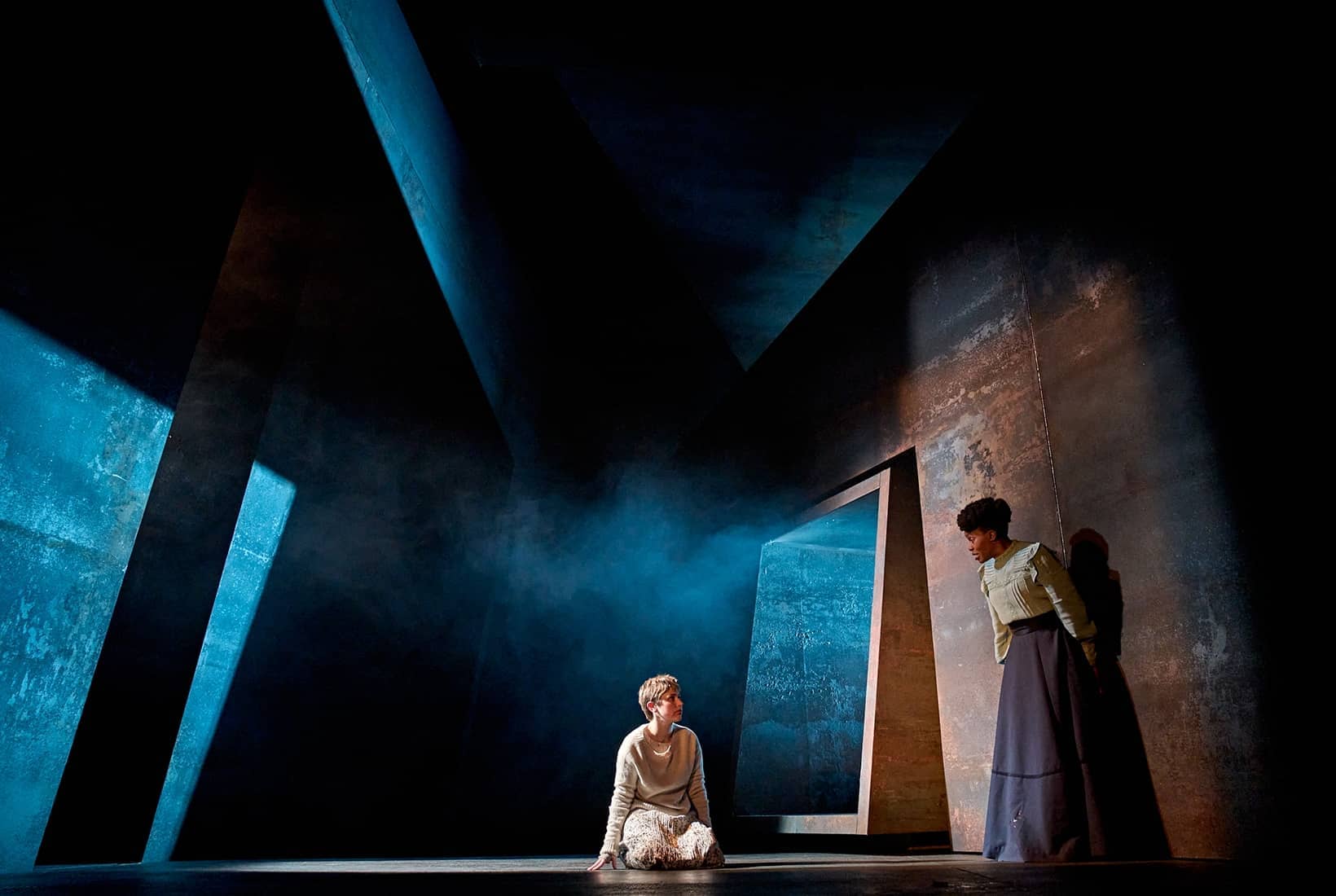 These boring scenes are perked up with fancy projections and Wagnerian sound effects. Distractions such as this often indicate an anxious director who knows that the script is a dud and wants to bamboozle the crowd with flashy extras. The show’s crowning horror, the set by Merle Hensel, is a rusty angular bunker that looks like a bikeshed designed by the Soviet Union’s most successful brutalist.
