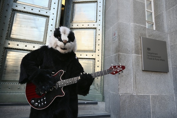 Brian May dressed in a badger suit, singing a specially-composed ‘badger song’? That’s what we were promised on Wednesday morning, but alas, the stunt never pulled through. We did, however, see a flashmob of fifty ‘dancing badgers’ outside Defra HQ, protesting about this summer’s planned badger cull.