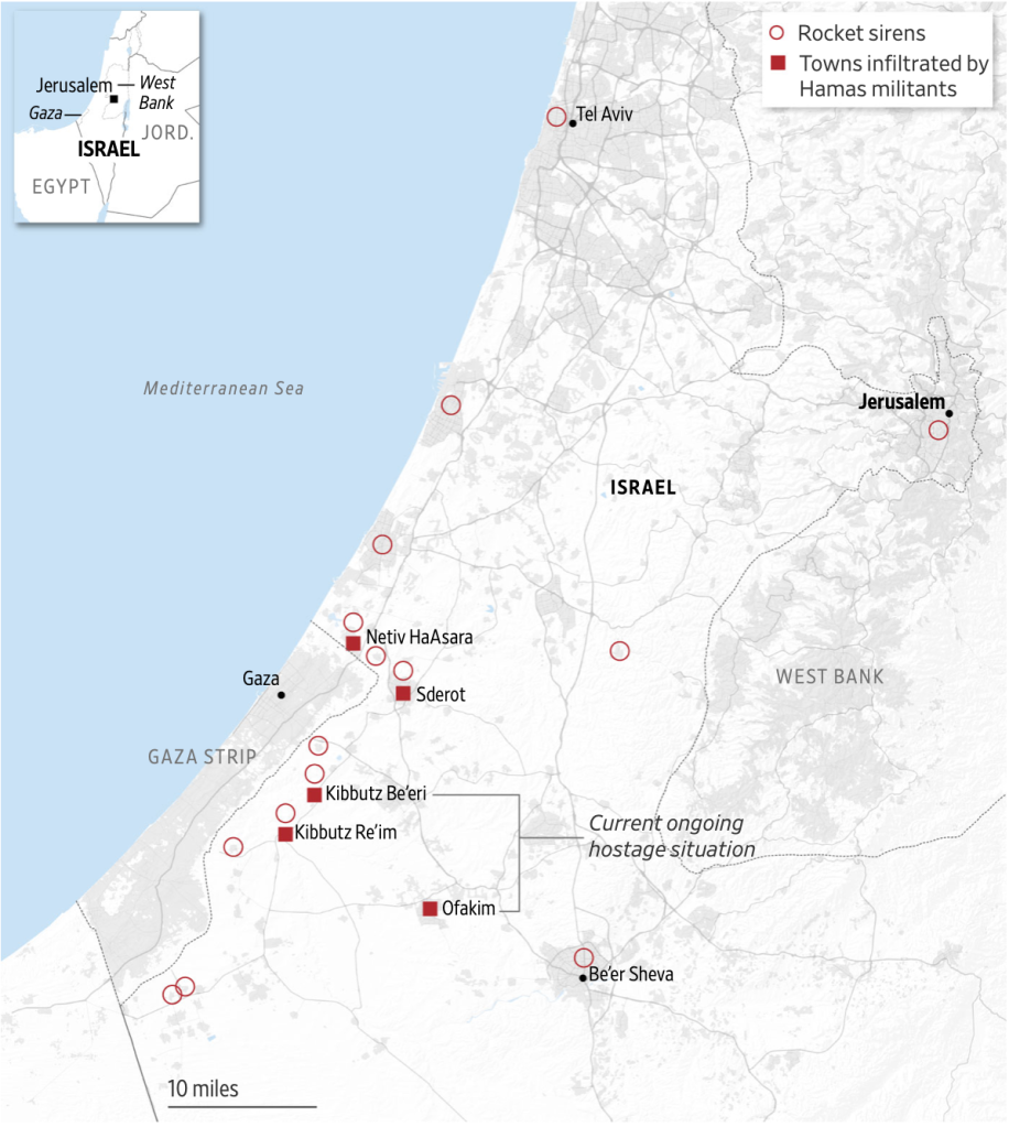 No one predicted this. There were no simmering tensions, no exchanges of fire, none of the telltale signs of a coming salvo. Today’s events are being compared to the Yom Kippur War, which saw a coalition of Arab and Muslim nations launch a surprise assault on the holiest day in Judaism. Today is Simchat Torah, when Jews celebrate their ancestors receiving the laws from God. The yom tov will forever be associated with what may come to be known as the Simchat Torah War.
