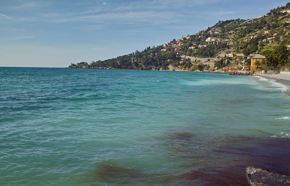 To get to the breakwater, either we must walk from the village past 500 metres of naked, mostly male flesh, or park the car in a road behind the pine forest and use a path that brings us out right in front of it. I prefer the forest path because it is shorter and, apart from the occasional naked man looming out of the dense foliage, less scenic.