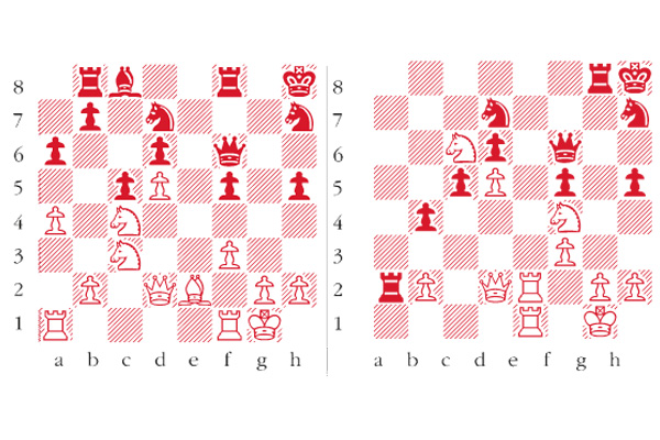 1 d4 Nf6 2 c4 g6 3 Nc3 Bg7 4 e4 d6 5 Nge2 0-0 6 f3 c5 7 d5 e6 8 Ng3 exd5 9 cxd5 Nbd7 10 Be2 a6 11 a4 h5 12 Bg5 Qe8 Imaginative but dubious. Black’s idea is to fianchetto his queen! However, the more normal moves 12 … Qa5 or 12 … Qc7 are less complicated and better. 13 Qd2 Nh7 14 Bh6 It is normal good policy for White in the King’s Indian to trade off Black’s aggressive dark-squared bishop. 14 … Qe5 15 Bxg7 Qxg7 16 Nf1 Pre-empting the disruptive advance … h4 and … h3. White’s manoeuvres, though strategically justified are somewhat time-consuming. Therefore, Black feels that he can strike at once in the centre to gain dynamic counterplay. 16 … f5 17 exf5 gxf5 18 Ne3 Kh8 Not 18 … f4 19 Nc4 Qxg2 20 0-0-0 when White’s threats are overwhelming. 19 Nc4 Qf6 20 0-0 Rb8 (see diagram 1) 21 Rfe1 Normally White would inhibit Black’s proposed expansion on the queenside by means of 21 a5. Ivanchuk, however, feels that his chances on the other wing allow him to ignore this disruptive thrust. 21 … b5 22 axb5 axb5 23 Na5 b4 24 Nb5 Ba6 25 Nc7 Bxe2 26 Rxe2 Rg8 27 Nc6 It is rare to see white cavalry so fearsomely entrenched in the opposite camp. This game might be seen as an object lesson in the advantages of centralisation over wing manoeuvres. 27 … Rbc8 28 Ne6 Ra8 29 Rae1 Ra2 30 Nf4 (see diagram 2) With multiple threats including Ne7 and Nxh5. 30 … Qg5 31 h4 If now 31 … Qxh4 32 Ne7 threatening Nxg8 as well as Neg6+. 31 … Qg3 32 Re6 Ndf6 33 Ne7 The long awaited invasion takes place. White threatens Nxf5 as well as Nxg8. 33 … Rga8 Forlornly hoping for 34 Rxd6 Rxb2 35 Qxb2 Qxe1+ when Black wins. But White has something far stronger. The last chance was 33 … b3. 34 Nfg6+ Black resigns After 34 … Kg7 35 Nxf5+ forks Black’s king and queen.