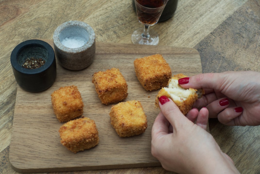 Being deeply unchic and uncosmopolitan, for a long time I assumed that croquetas were the same as the croquettes of my childhood: potato-based, probably a bit bland, and almost certainly coming from a bag that lives in the freezer. We’d often have them served with roast ham and cider sauce and green beans, as part of a main meal. To be fair to me and my culinary shortsightedness, the two bear strong similarities: both are breadcrumbed and fried or baked, soft within, and similarly shaped and sized. But, to my mind, croquetas are several levels above the French/English potato variant.