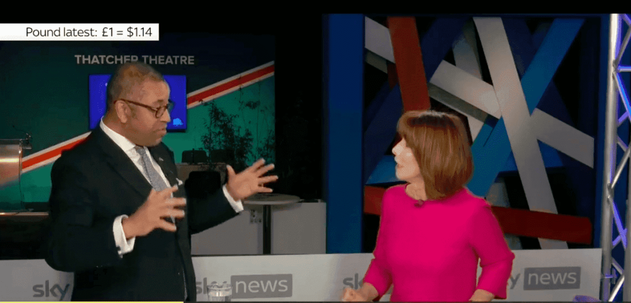 Rowing back slightly after being prodded by Burley again, Cleverly said the 45p tax cut was a ‘distraction’ from their other policies. Nothing to do with the plunging pound or backbench rumblings in the Tory party, eh James?