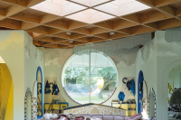 The beguiling distribution of space in Albers’s pictures is much to do with his use of paint and line in close collaboration. Although his work is very linear, it is seldom graphic — it evokes rather than describes. The lines are there to anchor form but also to allow the spirit to soar beyond their confines. The square within a square within a square is not a reductionist progression but a means of invoking infinity, just as colour is not definition so much as motion. In the main gallery space hang three small studies for the ‘Homage to the Square’ series. These are grouped together, followed by a gap, caesura, hiatus or pause. This perfectly pitched and phrased empty passage of wall intervenes before the eye reaches the larger and more majestic ‘Homage to the Square: “Half Past”’ (1966). This inspired piece of hanging beats gently at the very heart of the show.