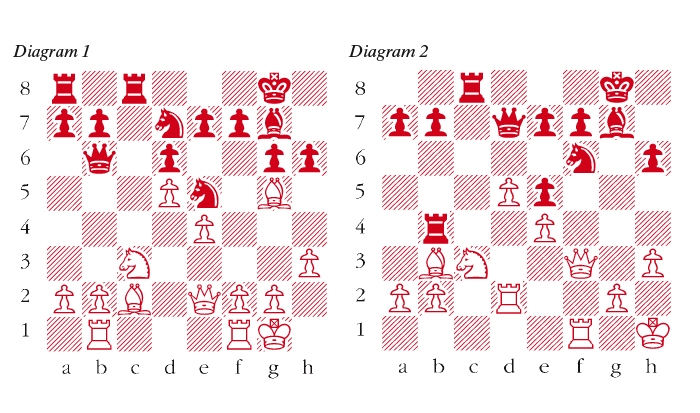 1 e4 c5 2 Nf3 d6 3 c3 Nf6 4 Be2 Setting a transparent trap. 4 … Nxe4 naturally failed to 5 Qa4+ forking king and knight. 4 … g6 5 0-0 Bg7 6 Bb5+ Nc6 7 d4 Qb6 8 Ba4 cxd4 9 cxd4 0-0 10 d5 Nb8 A new move in this position. 10 … Na5 has previously been played while if 10 … Ne5 then 11 Nxe5 dxe5 12 Nc3 followed eventually by Be3 gives White an excellent position. 11 Nc3 Bg4 12 h3 Bxf3 13 Qxf3 Nbd7 14 Rb1 Rfc8 15 Bc2 Ne5 16 Qe2 Nfd7 17 Bg5 h6 (see diagram 1) 18 Bh4 18 Bxe7 is possible when 18 … g5 19 Nb5 Ng6 20 Nxd6 Nxe7 21 Nxc8 Rxc8 leads to a dynamic balance. 18 … g5 This kind of weakening move around the king is acceptable but only if Black maintains very active piece play. If White is allowed to consolidate, the chickens will come home to roost around Black’s king. 19 Bg3 Qa6 20 Qd1 Rc4 Totally misguided. Now White organises his kingside attack. 20 … Nc4 would be fine for Black. 21 Kh1 Rac8 22 f4 gxf4 23 Bxf4 Qb6 24 Qh5 Nf6 25 Qf5 Qd8 26 Bb3 Rd4 27 Bxe5 dxe5 28 Rbd1 Qd7 29 Qf3 Rb4 30 Rd2 (see diagram 2) 30 … Rf8 This is too passive. The last chance for active counterplay was 30 … b5. Now Black gets rolled up on the kingside. 31 g4 a5 32 Rg2 Nh7 33 h4 Rb6 34 g5 Kh8 35 Rfg1 f5 36 Qh3 Rb4 37 gxh6 Bxh6 38 Qg3 White’s impressive tripling of his major pieces has led to a massacre in the g-file. White even threatens Qg8+ mating. 38 … Nf6 39 Qg6 Ng4 40 Rxg4 Black resigns