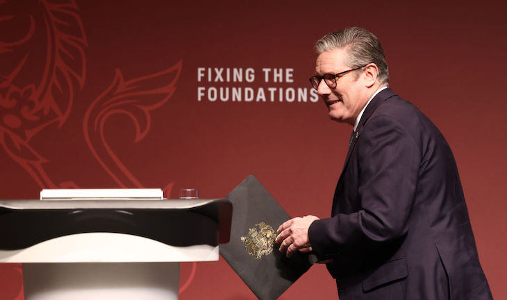 Anticipating a negative reaction from those people and others, Starmer repeatedly told the audience in Birmingham that he would not change course. He peppered his speech with phrases like ‘we won’t be distracted from our task’, and ‘these are my priorities for change, and I won’t change course’. He also claimed that the government was frontloading the difficult decisions, saying it was ‘our intention to take the tough decisions here and now up front, in the hope that we can then build and rebuild the country on that stable foundation’. But notably he refused to rule out further tax rises in subsequent budgets – a promise he was wise to dodge – saying: ‘I can’t give you a cast iron guarantee that never again in any budget will there be any adjustment to tax, because we just don’t know what’s around the corner’.