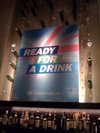 Thanks to Guido for snapping this arresting political slogan. The Conservatives will now sweep the country; of that I have now doubt. But as ever, there is a complication. In what is clearly an indication of the Tories’ target audience and political intent, lashings of Scotch and Newcastle Brown Ale are readily available, but Eric Pickles has banned Champagne. Is this the precursor of a hardening Eurosceptic line…?
