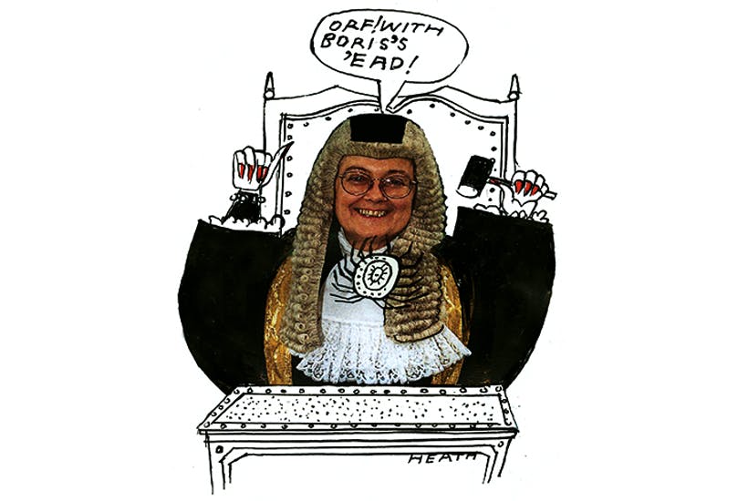They say I must retire next month when I turn 75. Irritating. I have been a member of the Supreme Court since 2009 but its president — a term I do like — only since 2017. There is still much to be done. Julian, my current spouse, indicates he has little desire to have me under his heels at home. I would merely get in the way of his dusting and the Tupperware parties he holds every month with other SW1 house-husbands. Jolyon Maugham QC — a slightly familiar young man, but I am told he has the right views — comes to see me. He proposes challenging the legality of my compulsory retirement, perhaps using the Scottish courts. We could ‘crowd-fund’ the costs, he says. I doubt there are that many fools in the world. ‘You’d be surprised,’ says Mr Maugham. He feels we could pursue the case all the way to the top, i.e. to the Supreme Court. Given tiresome levels of press scrutiny I suppose I might have to recuse myself from any such judgment. Could I rely on my fellow justices to reach the right decision without my helping hand?