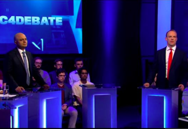 It kicked off with enough blue-on-blue attacks for the Johnson campaign to have some cover over their decision to give it a miss. Rory Stewart accused his rivals of adopting a ‘macho’ approach to Brexit. Meanwhile, Raab accused Stewart of adopting a Venezuelan approach to Brexit with his suggestion of a citizen’s assembly. Hunt swiped at Johnson over his absence: ‘If Boris’s team won’t let him out to debate five pretty friendly colleagues, how will he get on with 27 EU countries.’ With Johnson absent, there appeared to be a ‘get Raab’ flavour to the proceedings with the other four candidates turning on Raab for refusing to rule out proroguing Parliament to deliver Brexit by the end of October. Javid was particularly spiky on the issue suggesting such behaviour was befitting of a dictator: ‘You don’t deliver democracy by trashing democracy. We are not selecting a dictator.’