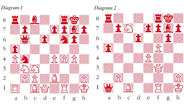 1 e4 d6 2 d4 Nf6 3 Nc3 g6 4 f4 Bg7 5 Nf3 0-0 6 Be2 Today White normally plays the more aggressive and superior 6 Bd3. 6 … c5 7 dxc5 Uninspiring but 7 0-0 cxd4 8 Nxd4 is a Classical Dragon where White has played f2-f4 slightly too soon, and either 8 … Nbd7 9 Kh1 a6 or 8 … Nc6 9 Be3 Qb6 gives Black good play. 7 … Qa5 8 0-0 Qxc5+ 9 Kh1 Nc6 Black achieved a favourable Dragon set-up, since White’s pieces are posted rather passively. 10 Nd2 a5 Black’s queen now gets extra squares, while a knight on b3 is undermined by … a5-a4. 11 Nb3 Qb6 12 a4 Nb4 White will experience problems ejecting this knight. 13 g4 (see diagram 1) Fischer’s psychotic last move is reminiscent of a Star Trek episode where Spock grapples with human feelings and loses control. 13 … Bxg4! 14 Bxg4 Nxg4 15 Qxg4 Nxc2 The point: Black gets a nasty double attack on b3 and a1, regaining all his material, with the bonus of overextending White at the end of it. 16 Nb5 Nxa1 17 Nxa1 Qc6 18 f5 Weakening further, but the time is long gone for a passive move such as 18 Qf3. It becomes quite clear that stalling fails to diminish the urgency in White’s rotting position. 18 … Qc4 19 Qf3 Qxa4 20 Nc7 Qxa1 (see diagram 2) 21 Nd5 Grabbing material with 21 Nxa8 Rxa8 is no better. After 22 fxg6 fxg6 23 Qf7+ Kh8 24 Qxe7 Qb1! 25 Qxb7 Re8 26 Re1 Qd3! (threatening … Qf3+ followed by … Bd4+) 27 Kg2 Qc2+ 28 Kh1 Be5 mates. 21 … Rae8 22 Bg5 Qxb2 23 Bxe7 Be5 24 Rf2 Qc1+ 25 Rf1 Qh6 A dual purpose move. Black threatens mate on h2 and the queen enlists yet another defender of her king’s dark squares. 26 h3 gxf5 27 Bxf8 Rxf8 28 Ne7+ Kh8 29 Nxf5 Qe6 30 Rg1 a4 31 Rg4 Qb3 32 Qf1 a3 33 Rg3 Qxg3 White resigns 34 Nxg3 a2 wins.