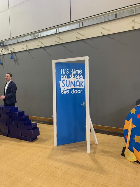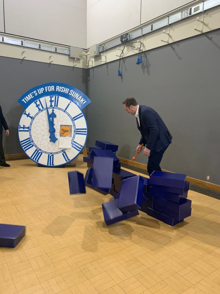 Delegates had fun knocking down and then rebuilding the ‘blue wall’ with Ed Davey’s infamous orange hammer