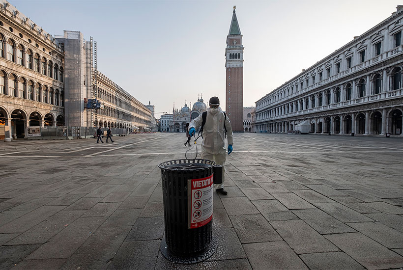 According to the government’s emergency quarantine decree, which will remain in force until 3 April, no one can leave home without a valid motive. These include work and necessity, such as buying food or taking the dog for a walk. This means no one can leave the province where they live unless they have an urgent reason. Holy Communion in church has been cancelled, as have funeral and wedding ceremonies. Even Serie A football has been suspended. Most sport seems to be cancelled. All public gatherings inside or out are banned. Discotheques, cinemas, museums, galleries, theatres, swimming pools, gyms, you name it — all closed.