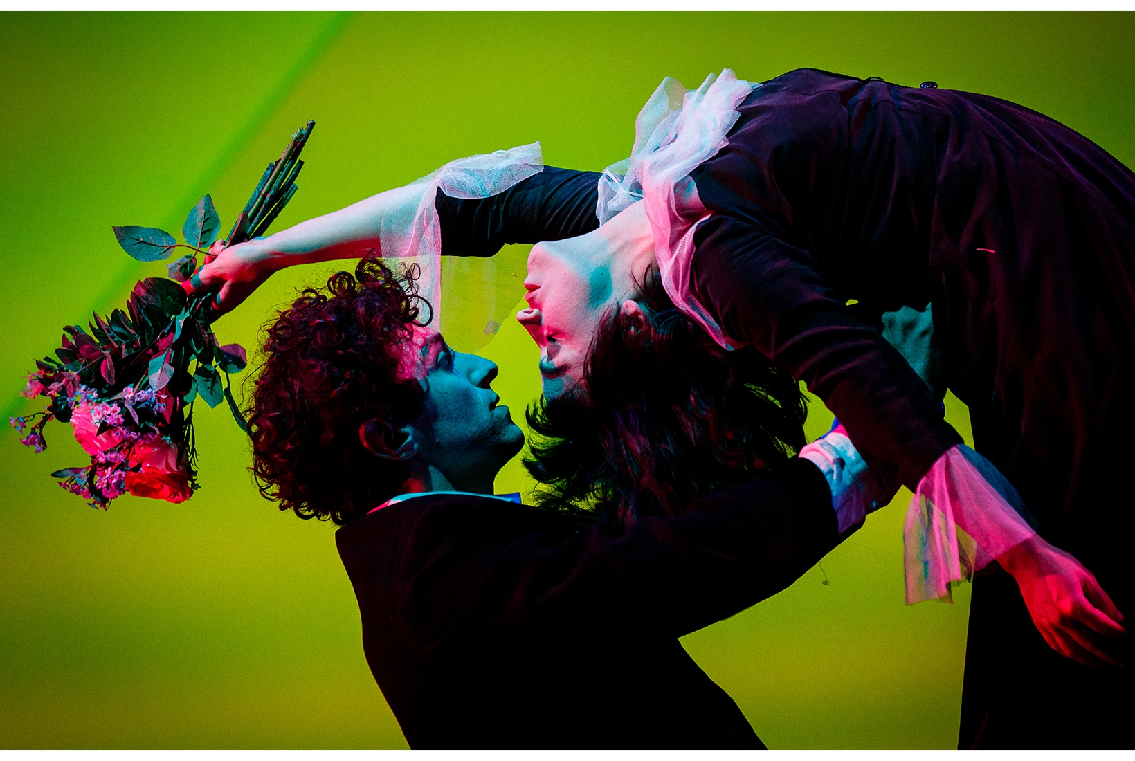 Emma Rice, the director, relies on her usual blend of dances, songs and pretty lighting to tell her tale. She has very low expectations of her audience. The sad characters cry. The happy characters laugh. The amorous characters dance rapturously. Everyone sings a lot. The script consists mainly of plot points written in clunky, airless prose. ‘It was the best exhibition I’ve ever had,’ announces Marc after an early success in Berlin. ‘Now I can go back to Russia with my head held high.’ He seduces a model, Bella, but dumps her and moves to Paris in search of fame. ‘Four years he’s been gone,’ she mopes, ‘and he writes hardly at all.’ Then he marches back into town with a marriage proposal. ‘My knowing you has always seeped backwards as well as forwards in time,’ he says, perhaps trying to imitate in words the swirly, mystical texture of his dreamscapes.