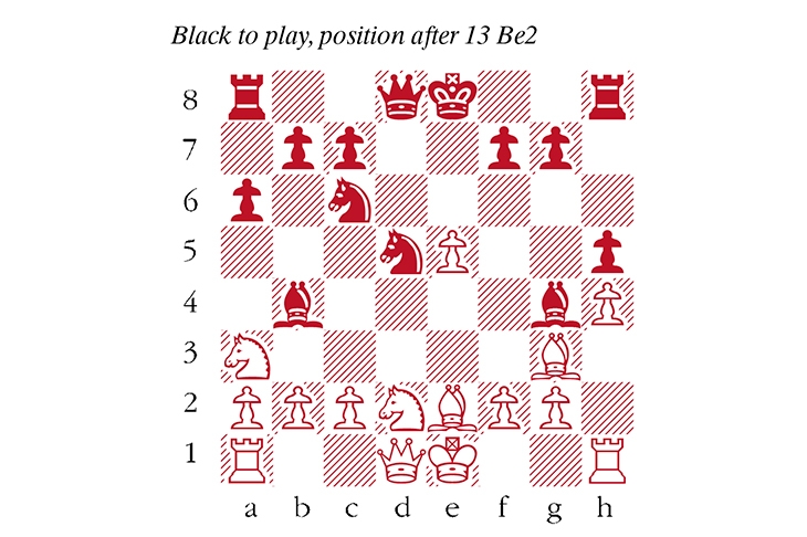 1 e4 d5 2 exd5 Qxd5 The Scandinavian defence is an unusual guest at top level, but Dubov enjoys hunting for fresh ideas. 3 Nc3 Qd6 4 d4 Nf6 5 Nf3 Nc6 6 Nb5 Qd8 7 Bf4 Nd5 8 Bg3 a6 9 Na3 e5! Karjakin’s knight manoeuvre is not as silly as it looks. I’m sure he was hoping to bring the knight to c4 soon to tighten his grip on the centre. Dubov strikes while he can. 10 dxe5 Bb4+ 11 Nd2 h5! 12 h4 A reflex response to the threat of h5-h4, but 12 h3 was better to prevent Black’s next move. 12…Bg4! 13 Be2 (see diagram) A blunder, but 13 Qc1 Qe7 prepares queenside castling, with a huge lead in development. 13…Bxa3! Decisive, as 14 bxa3 Nc3 forks queen and bishop. 14 Bxg4 Bxb2 15 Bxh5 A further indignity: 15 Bf3 Nc3! traps the White queen. 15…Bxa1 16 e6 g6 17 Bf3 Bf6 18 exf7+ Kxf7 White is a rook down but limps on a few more moves. 19 Be4 Nc3 20 Qg4 Nxe4 21 Nxe4 Qc8 22 Qf4 Qf5 23 Qxc7+ Kg8 24 f3 Rh7 25 Qd6 Re8 26 O-O Bd4+ 27 Bf2 Rd7 28 Qa3 Rxe4 White resigns