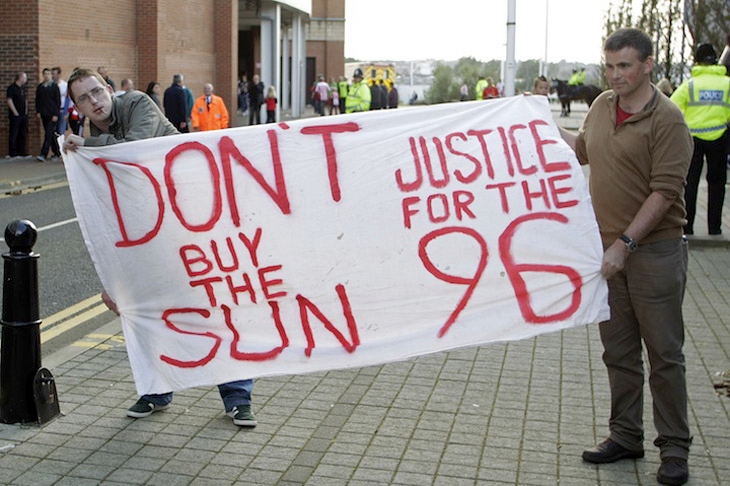 Out of the appalling tragedy of Hillsborough has emerged the shape of modern British football; its stadiums, its massive audiences, its wealth. Out of the sadness too has come a belated justice, and the corruption at the heart of South Yorkshire police was finally laid bare in the inquest. No one could watch the families emerge on to the steps of Warrington Crown Court last April to sing ‘You’ll Never Walk Alone’ after the verdict without shedding a tear. But it seems an ominous reason, now, 28 years later, to prevent one football reporter from doing his job. Who knows what could come next? First they come for the Sun…