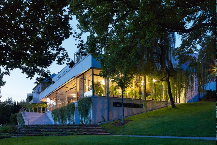 The main room at the Villa Tugendhat is a glass box, with floor-to-ceiling windows on two sides. In fine weather these can be opened by an electric device which lowers them smoothly and completely into a slot beneath. It is only when you are taken downstairs to the floor devoted to practical utilities that you discover how it was possible to reside like this in a Central European climate of freezing winters and sweltering summers.