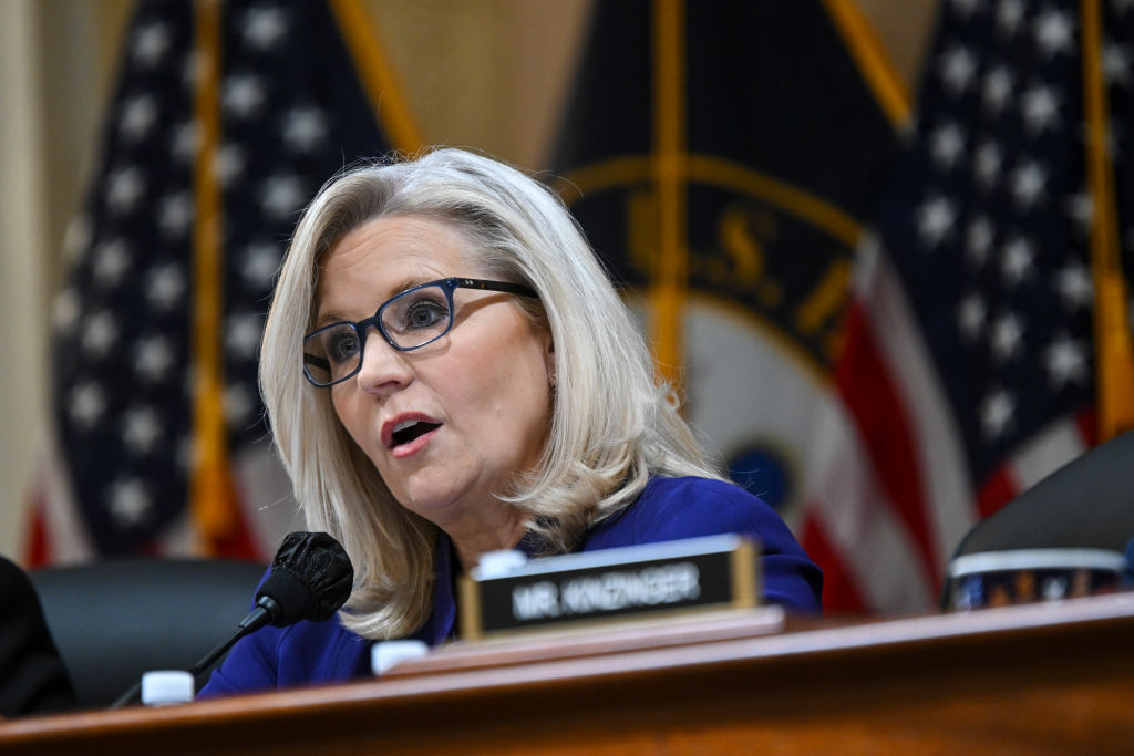 Rep. Liz Cheney (R-Wyo.) speaks during the January 6th Committees final session at the Cannon House Office Building on Monday afternoon on Capitol Hill in Washington, D.C. on December 19, 2022 (Getty Images)