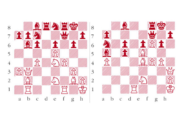 1 c4 e6 2 Nc3 f5 3 g3 Nf6 4 Bg2 c6 5 d3 Na6 6 a3 Be7 7 e3 0‑0 8 Nge2 Nc7 9 0‑0 d5 10 b3 Qe8 11 Bb2 Qf7 12 Rc1 Bd7 13 e4! This central thrust announces that White has won the battle of the opening. 13 … fxe4 14 dxe4 Rad8 15 e5 Nfe8 16 f4 dxc4 17 bxc4 Bc5+ 18 Kh1 Be3 19 Rb1 g6 An unnecessary weakening of f6 from which Staunton soon profits. 20 Qb3 Bc8 21 Ne4 Bb6 (see diagram 1) 22 Rbd1 Even more powerful, in fact, would have been 22 c5 Ba5 23 Nd6. As played, Black’s defence is granted a glimmer of hope. 22 … Na6 23 Qc3 Rxd1 24 Rxd1 Nc5 25 Nd6 Qc7 26 Qc2 Ng7 27 g4 The prelude to the decisive attack, in which Staunton’s pieces stream across to the right-hand side of the board to menace the black king. First of all, Staunton restricts the possibilities of Black’s defensive knight on g7. 27 … Qe7 28 Bd4 Qc7 29 a4 Na6 30 c5 Ba5 31 Qb3 b6 32 Ne4 bxc5 If instead 32 … Nxc5 33 Bxc5 bxc5 34 Nf6+ Kh8 35 Qh3 Ne8 36 Rd7! winning the black queen since 36 … Bxd7 fails to 37 Qxh7 checkmate. 33 Nf6+ Kh8 34 Qh3 Ne8 35 Ba1 Staunton’s deployment of his forces creates a wonderful aesthetic impression, highlighted by this sweeping retreat of his bishop, but is still firmly targeted on the black king. 35 … Nxf6 36 exf6 Kg8 37 Be5 Qb7 38 Be4 Qf7 If Black can succeed in blockading the white passed pawn he may still survive, but Staunton’s next brilliant stroke banishes such hopes (see diagram 2). 39 Ng1! Another profound retreat which has the effect of substantially increasing the energy of the white knight. This piece is now free to manoeuvre via f3 to e5 or g5, causing havoc with the defensive units around the black king. 39 … Bd8 40 g5 Bb7 41 Nf3 Re8 42 Bd6 The coup de grâce which puts the finishing touches to Staunton’s encirclement of the entire black army. The threat of Ne5, trapping the black queen on almost a full board, now obliges Horwitz to make a desperate and futile sacrifice. 42 … Bxf6 43 gxf6 Qxf6 44 Ng5 Qg745 Be5 Qe7 46 Bxg6 Black resigns
