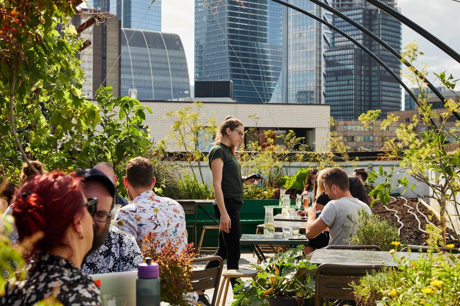 An urban oasis in the heart of East London’s creative quarter: The Culpeper’s green rooftop is used to grow veg that is then used in its food and drinks.