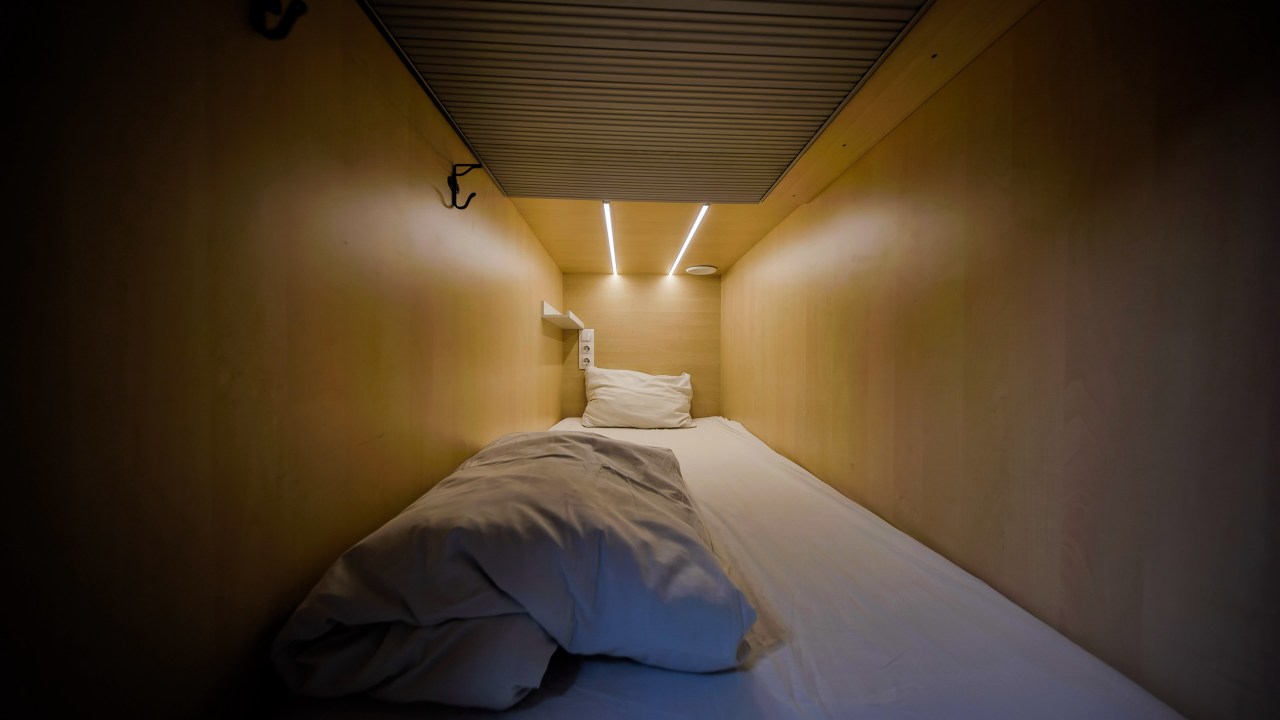The room is designed to be hosed down in haste. Please forgive the constant death metaphors, but if I had more I’d give it to you. It is pale oak and dark tile. There is a low bed in a box, and a shower room. The lighting is better than most British people have in their homes. There is nothing else: no chair; no television; no window because ‘sunrise is when you decide’ apparently. Why no television? No one comes to central London to be alone with their thoughts. And it’s too big: the floor space – at least as large as the bed – yawns horribly. As a cocoon, which is something that envelopes you, it fails: patrons with Oedipus complexes will be disappointed. Nor did I metamorphose. I woke up angry, but I always do.