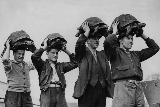Well, so much for the experts. The tortoises didn’t die. They emerged in fine fettle after a pretty vile winter, nosing curiously around the garden in Northamptonshire, needing nothing more than a bath to get the mud off their shells. During their absence, a wild duck had foolishly chosen their enclosure as the place in which to lay a large number of eggs. Alice, a very large and ancient tortoise, was fascinated to find them there, hidden in some shrubbery. She seems even to have decided to try to hatch them, for she plonked herself down upon them and keeps returning to the nest, however often she is moved. This is odd, because tortoises don’t sit on their own eggs; they just cover them with earth and leave them alone to hatch out of their own accord. So I don’t know what Alice thinks she is up to. It’s amazing that the duck eggs haven’t broken under her weight; but there is little hope of them hatching out now, for the mother duck, finding a tortoise sitting on her eggs, has understandably abandoned them.