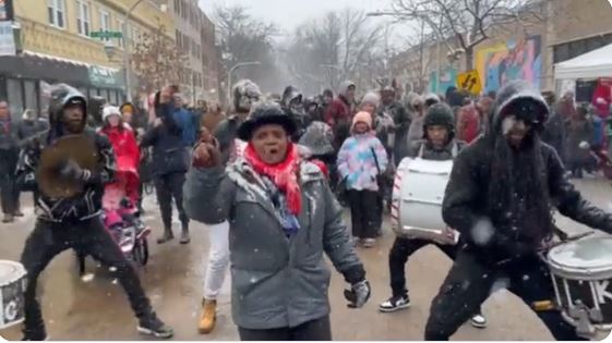 Cockburn is more than happy to trip the light fantastic when the occasion calls for it. But Lightfoot’s “dance” consists of a heavy-footed mayor standing mostly in place while she sways and bops from side-to-side (it’s likely she didn’t want to drift too far from the drum circle for fear of encountering one of the city’s stray bullets). She pumps her fists and shouts what Cockburn interprets to be a command to “VOTE!,” though no one can hear her over the percussionists.
