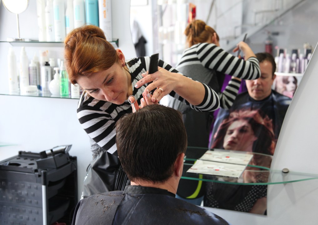 What it’s about I don’t know. But I’m guessing that they are being pert and making saucy conjectures about the sexuality, or the size, probably, of the English man sitting in the chair sedulously studying his smartphone. Sylvette is making all the running, forcing the other three into enraptured shouts of laughter. Then she turns to me and enlarges an eyeball horribly by yanking down the lower eyelid with a forefinger. I point a finger at my chest and convey with a cheerful shrug that if it’s me they are talking about they must do their worst because it will be as nothing when compared with what I’m used to in my day-to-day existence at home. I’m looking down at my phone again when Sylvette clomps over and invites me to place my arms through the holes in a hair-washing gown. I sit back down in the chair and lay the back of my neck on the cold basin rim and stare up at the ceiling. Sylvette’s coarse but not unsexy face intervenes. It is studying mine. The hazel eyes are perfectly at ease, as though it is all the same to them whether the helpless prey is upside-down or the right way up. Then she rests the tips of her fingers on my head and douses my scalp with cold then warm water. The touch is overly, disappointingly gentle. But this is merely the prelude to a wonderful fingertip symphony. In the language of the fingertips, the woman is masterly. I close my eyes in surrender. The touch is by turns soothing, kindly, caressing, playful, haughty, insolent, savage and brutal. The brutal sequence hurts. I open my eyes and look searchingly into hers. They smile down indulgently. I close my eyes again. After the brutal climacteric, the touch is contrite, sad and gently elegiac, then I am dismissed with a last quick, painful tug and a towel is thrown over my head. A quick rub-a-dub-dub and I’m back in full daylight and Sylvette is propelling me across the room towards the lovely growing girl with the cut-throat razor.